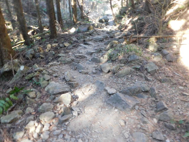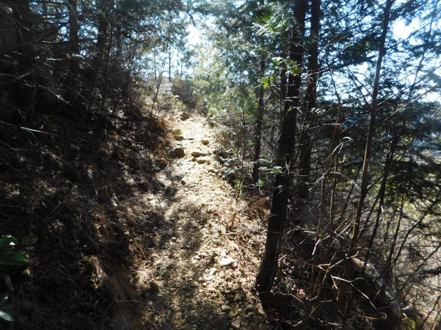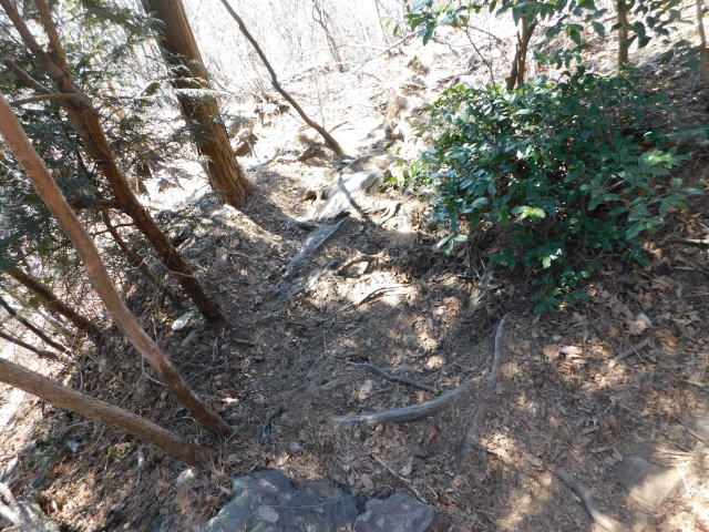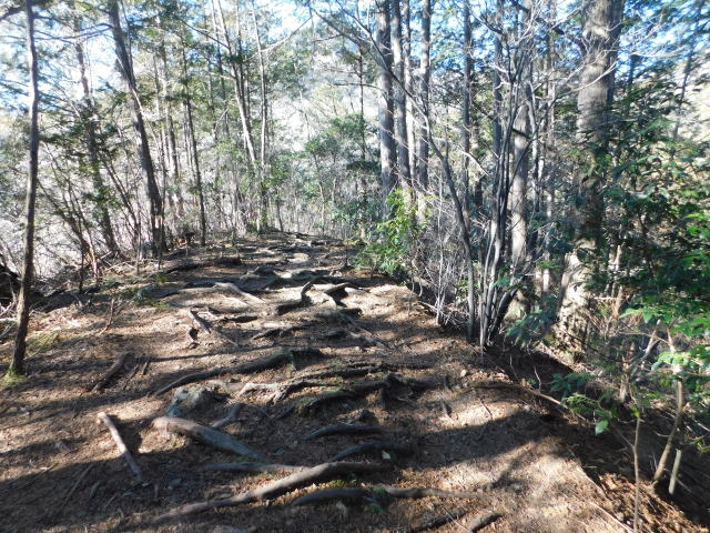 山頂下のベンチに行くため南陵直登コースの道を行く。