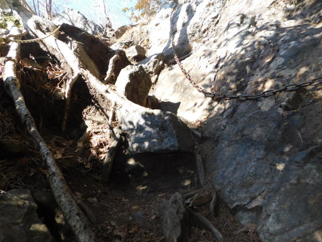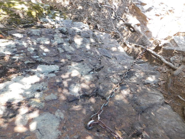 クサリとロープの岩場を降りる。