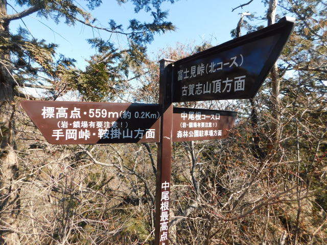 道標、中尾根方面へ行く。