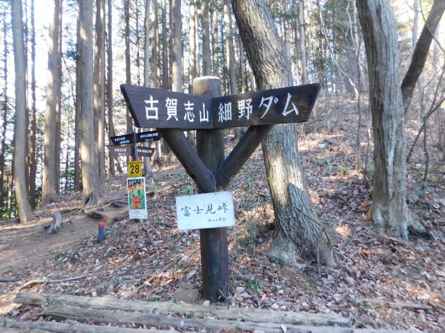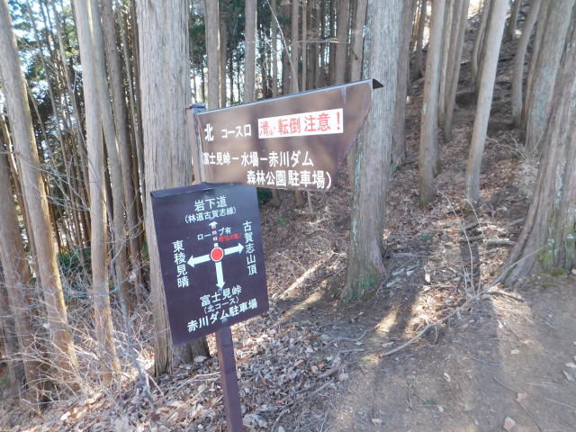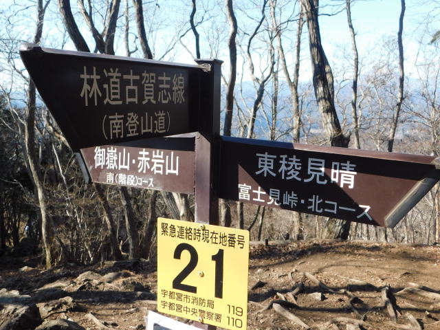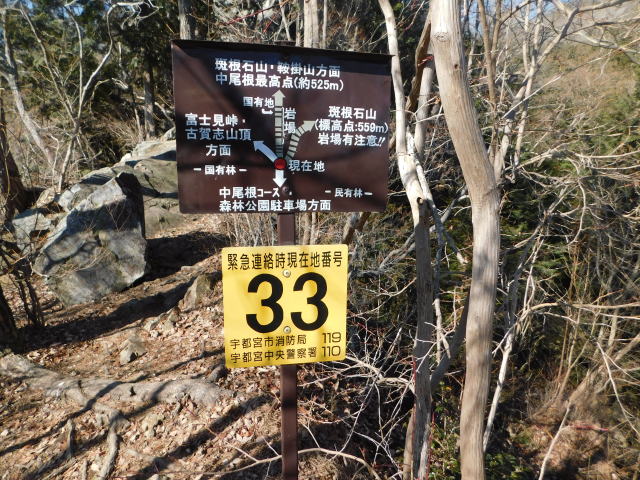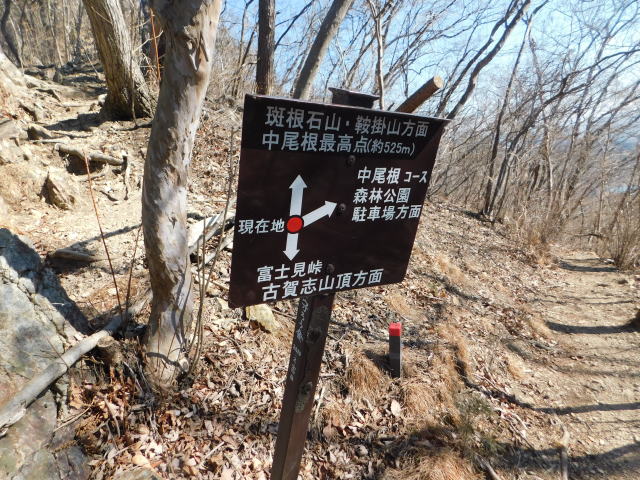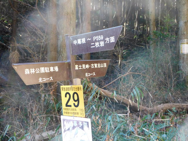 中尾根最高点の道標、冨士見峠、古賀志山頂方面へ行く。