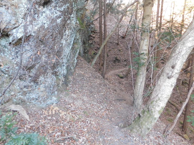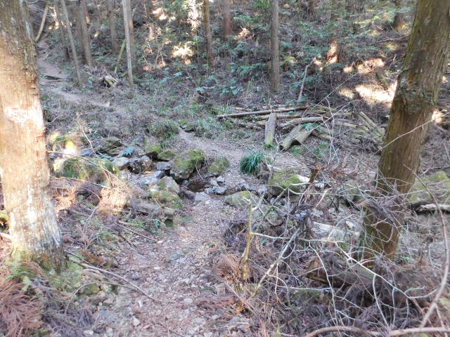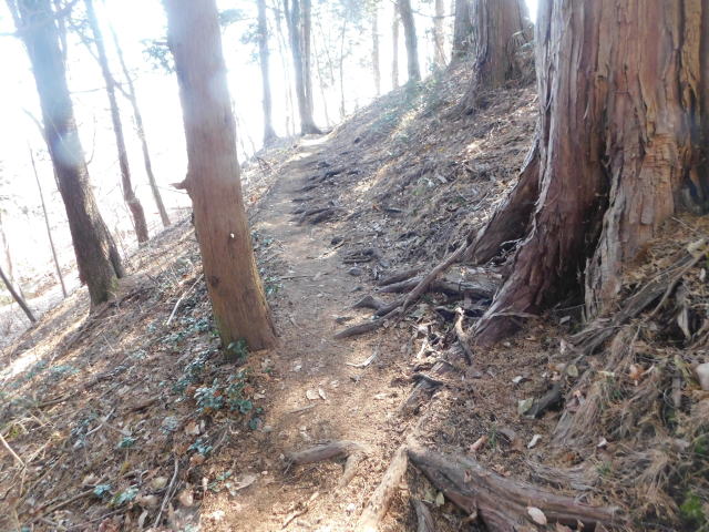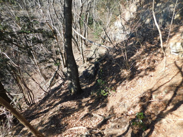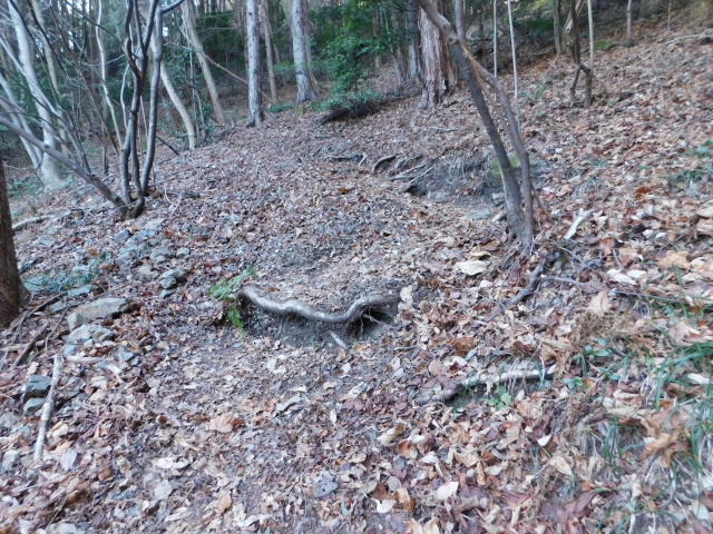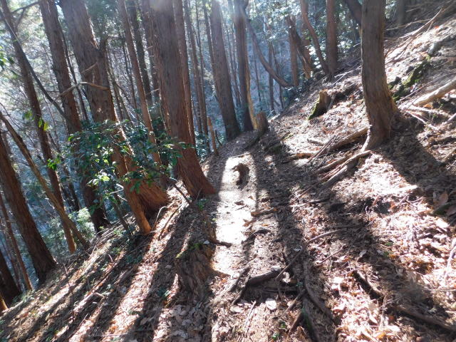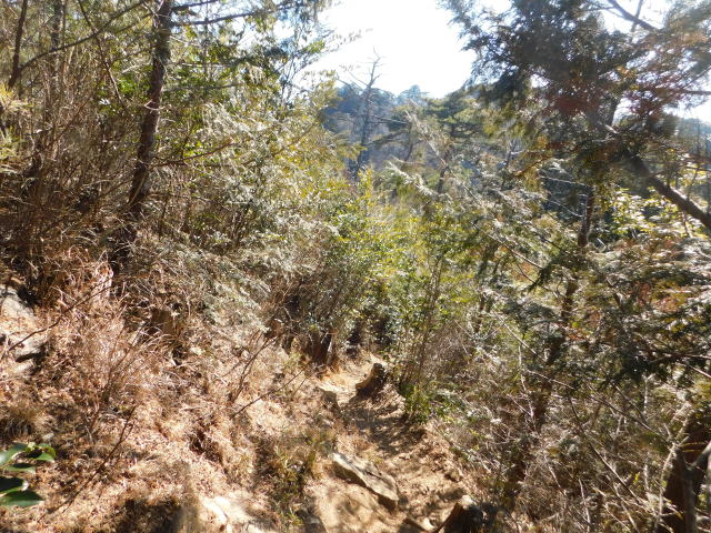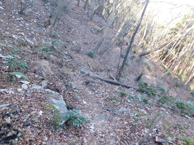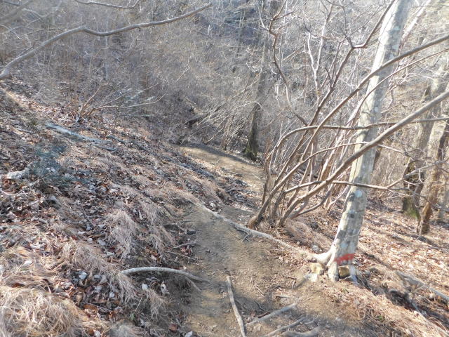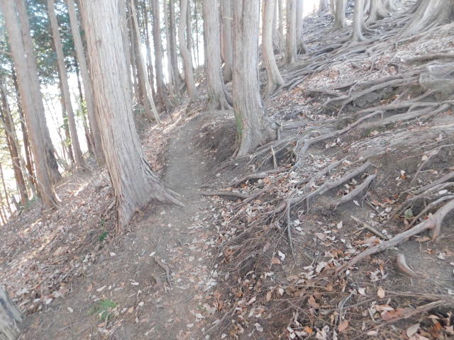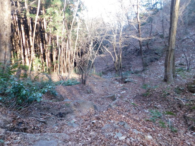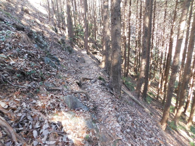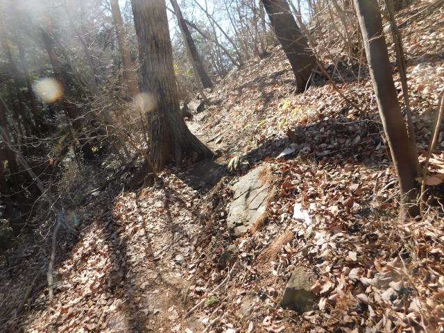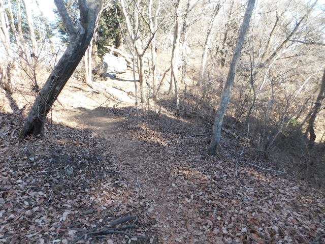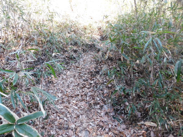 落ち葉で道が分からなくなる斜面は下りずに行く。
