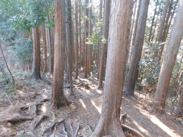 針葉樹林の道を登って行く。