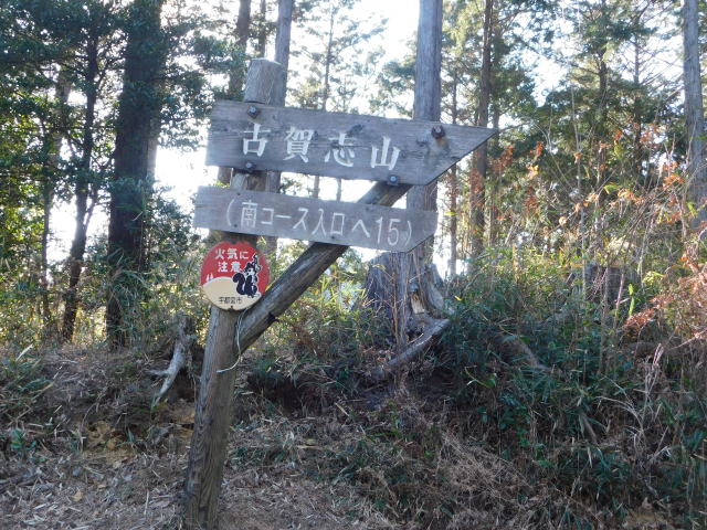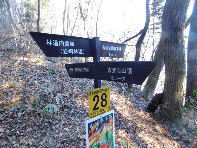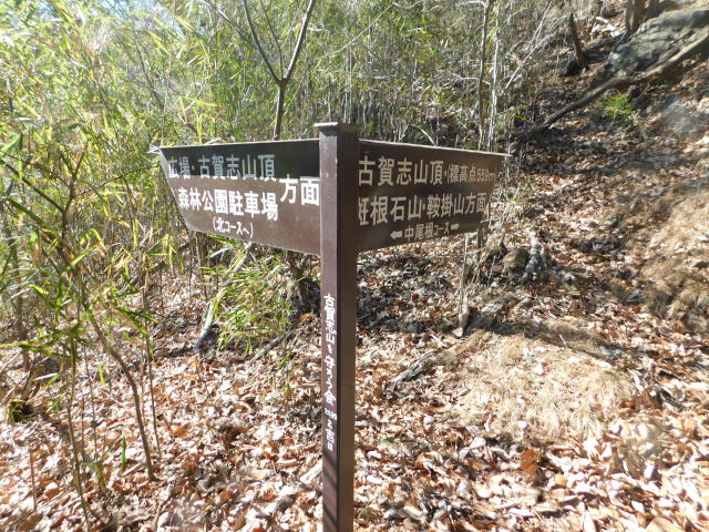 東稜見晴と古賀志山頂分岐の道標、古賀志山頂へ行く。