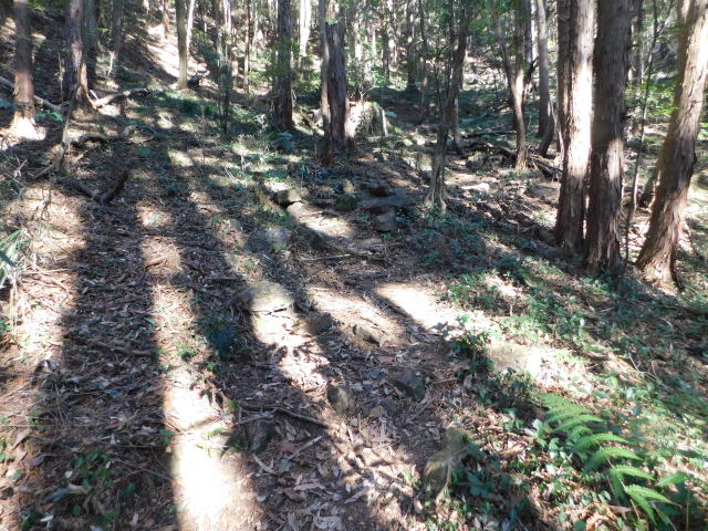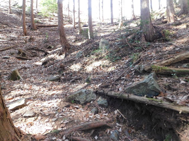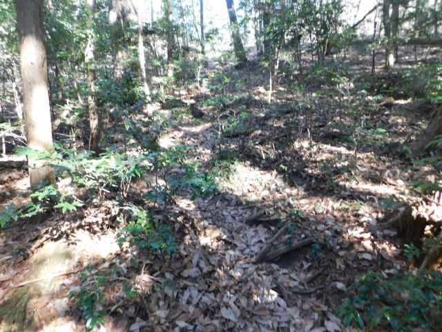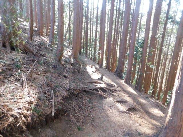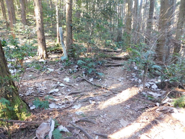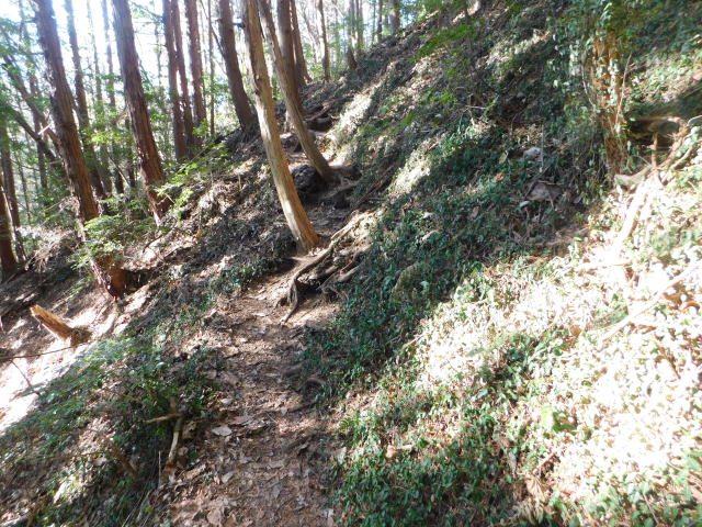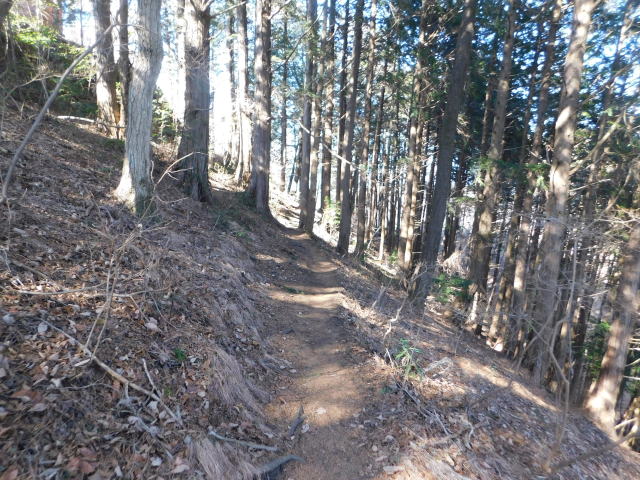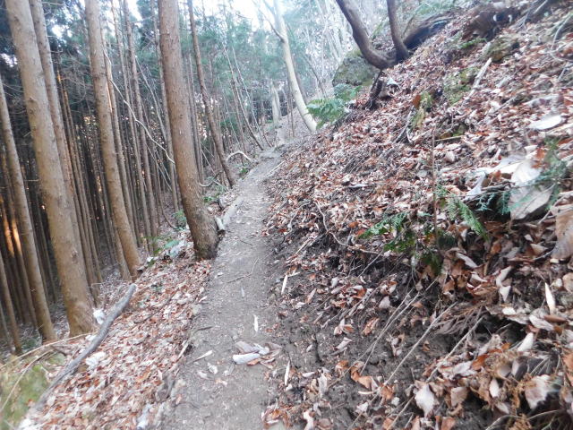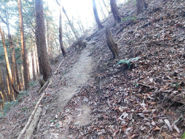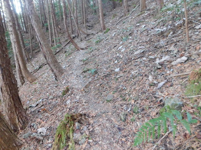 斜面をトラバースする道は落ち葉でも分かる。