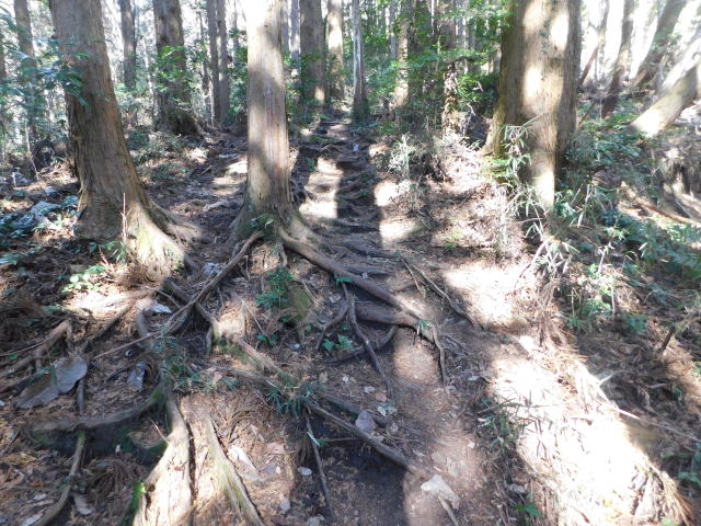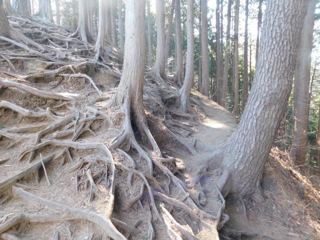 木の根の道を行く。
