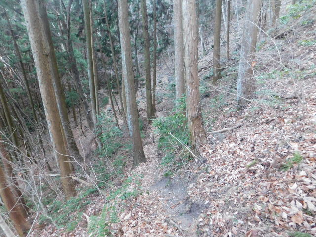 東稜見晴と古賀志山頂分岐から北へ急斜面を降りて行く。