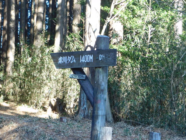 道標、赤川ダムへ行く。 古賀志山(南コースへ15分)の道標。
