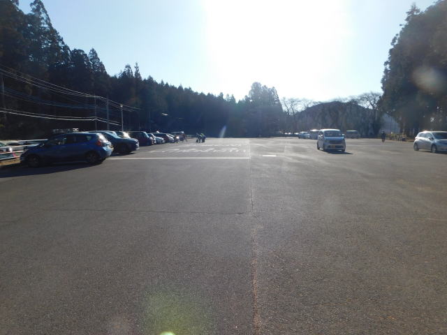 午後3時の道路側駐車場は1割程の駐車。 トイレ側は2割程の駐車。