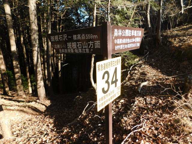 道標、斑根石山方面、中尾根コースを行く。