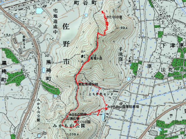 みかも山公園東駐車場−−かたくりの園−−山頂広場−−みかもの関跡−−青竜ヶ岳−−かたくりの里−−青竜ヶ岳−−東駐車場分岐−−駐車場