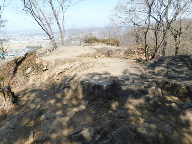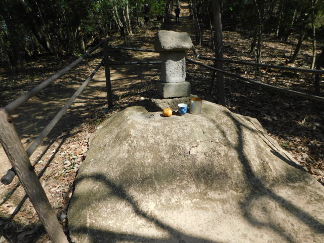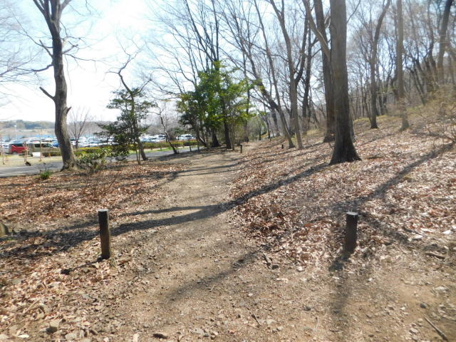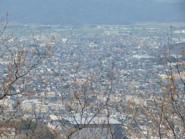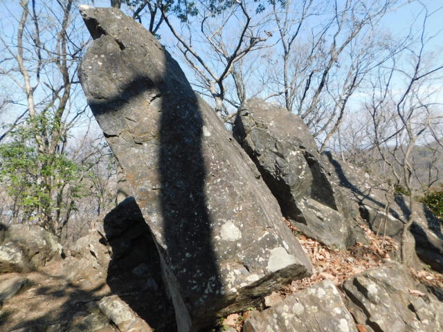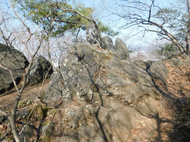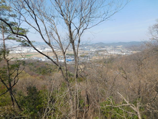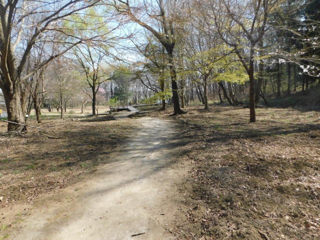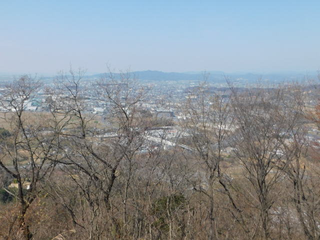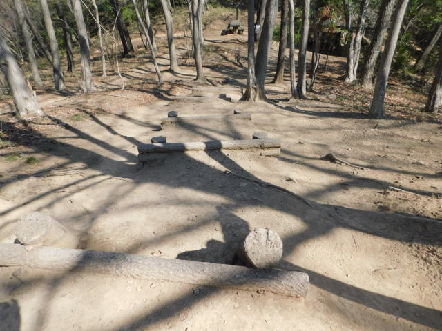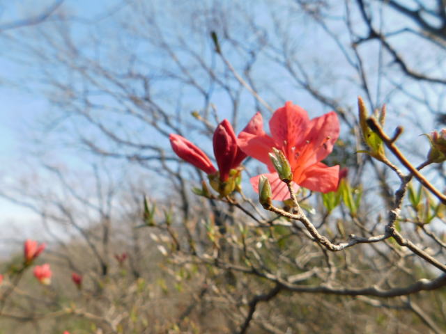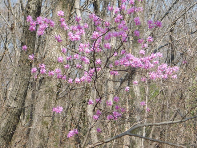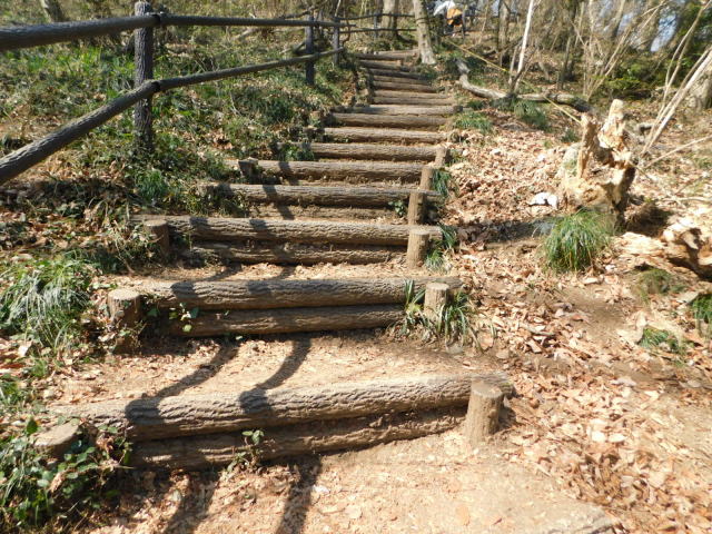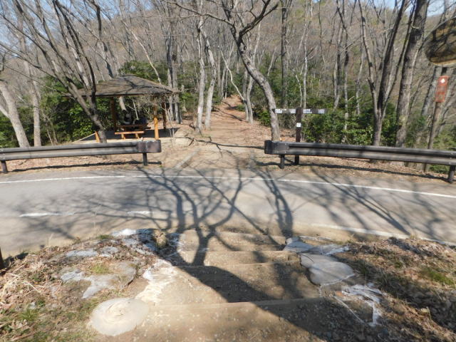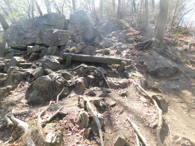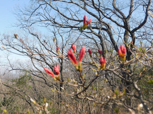 があった。上の展望台からのカタクリ咲く斜面を眺めて行く。階段を登って中岳には行かず山頂広場へ行く。山頂広場の東屋で一休みする。山頂広場からみかもの関跡へ行き
