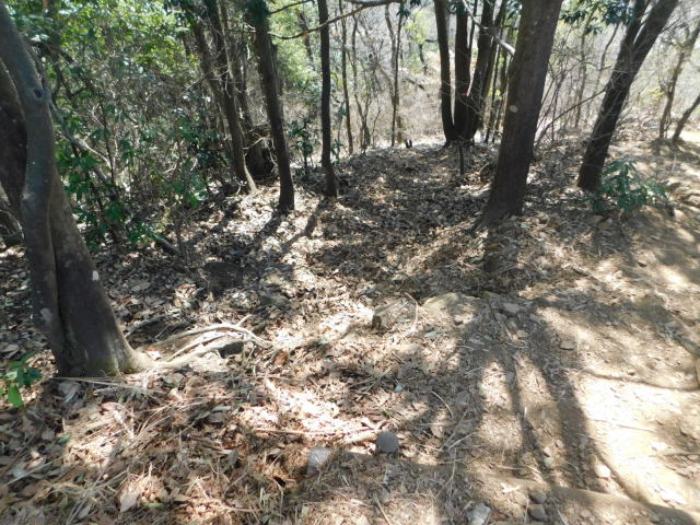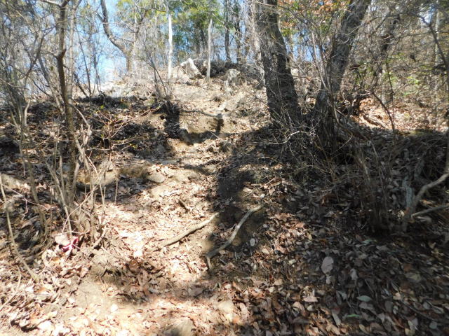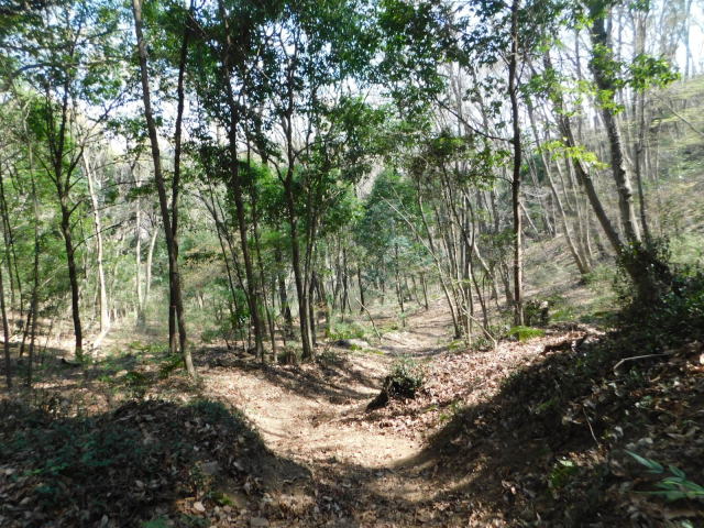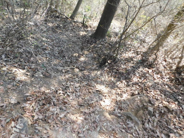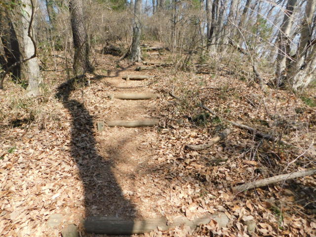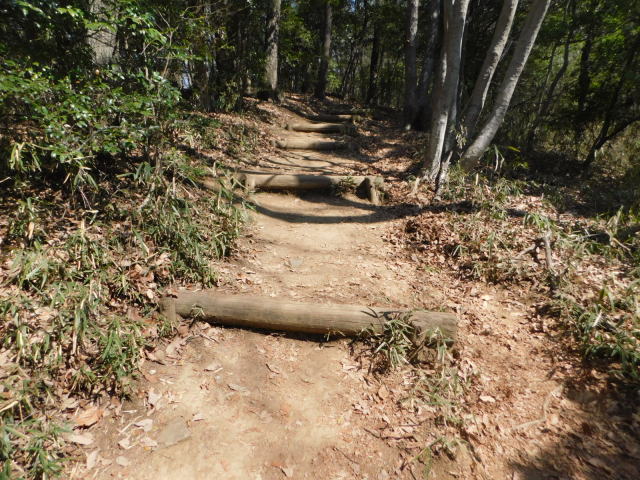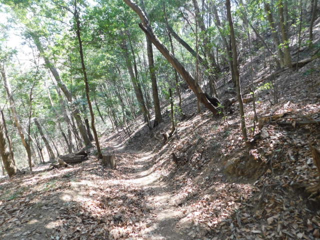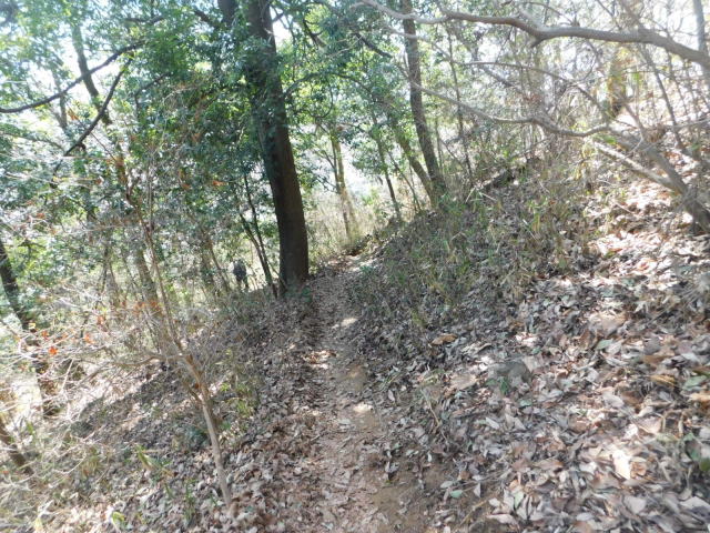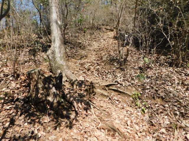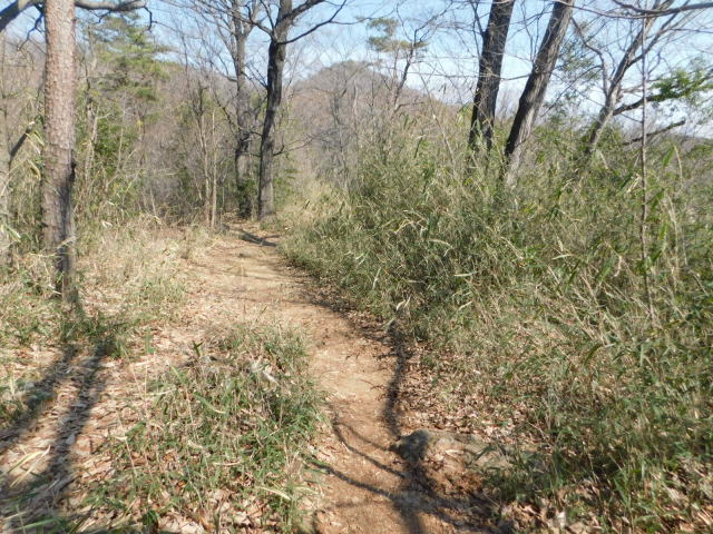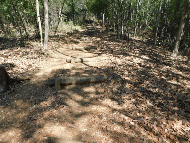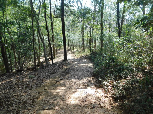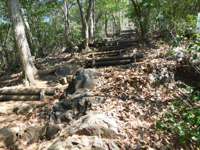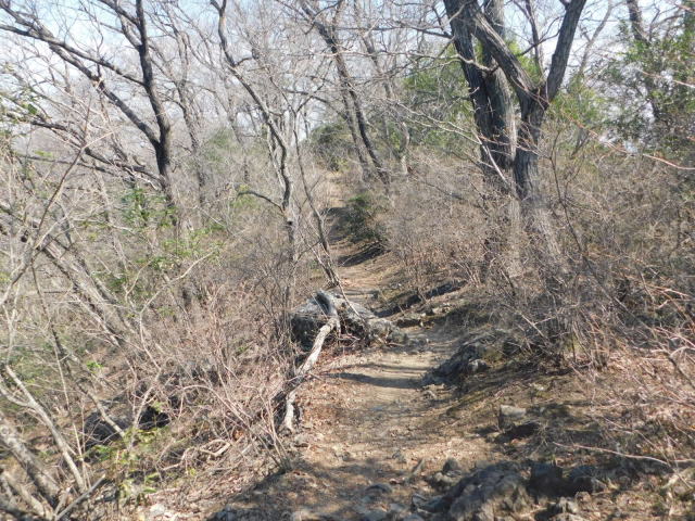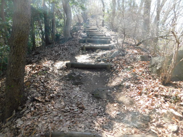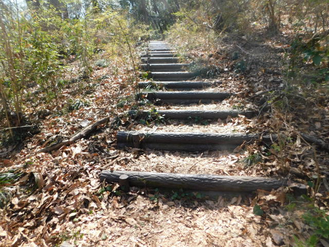 みかもの関跡から青竜ヶ岳に行く。青竜ヶ岳の急斜面の階段の登りは脇の階段でない急斜面を登って行く。青竜ヶ岳を降りてかたくりの里へ行く。かたくりの里の入口は扉が