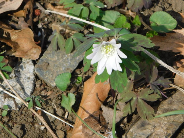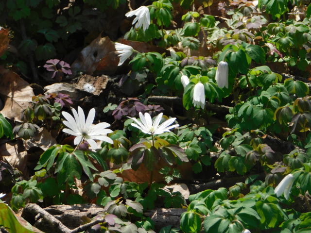 アズマイチゲの花は閉じていた。 開きかけたアズマイチゲ。