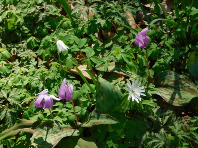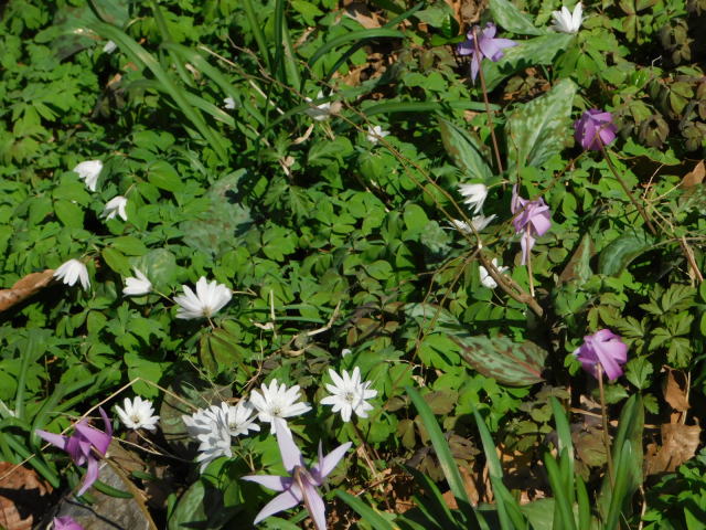 アズマイチゲとカタクリであるがアズマイチゲの花はほとんど閉じている。