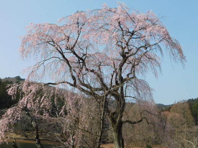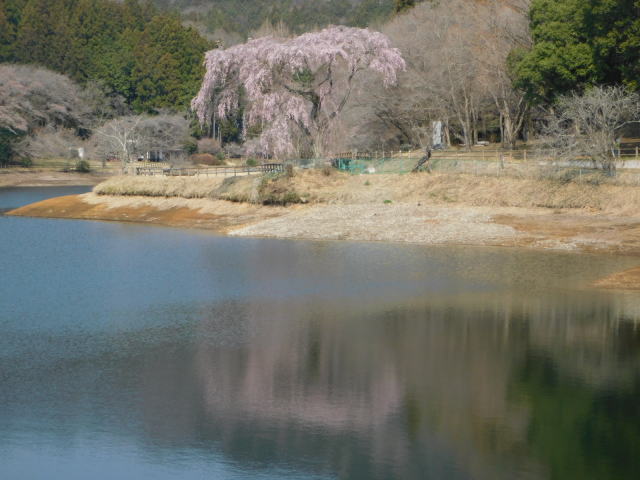 湖岸の枝垂桜。