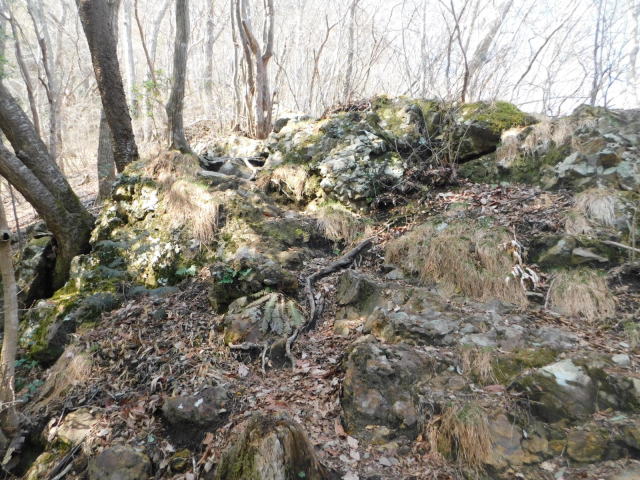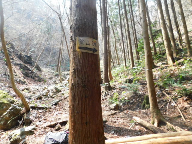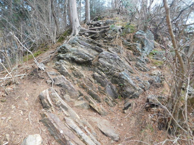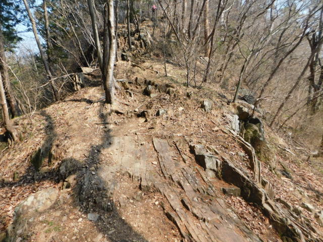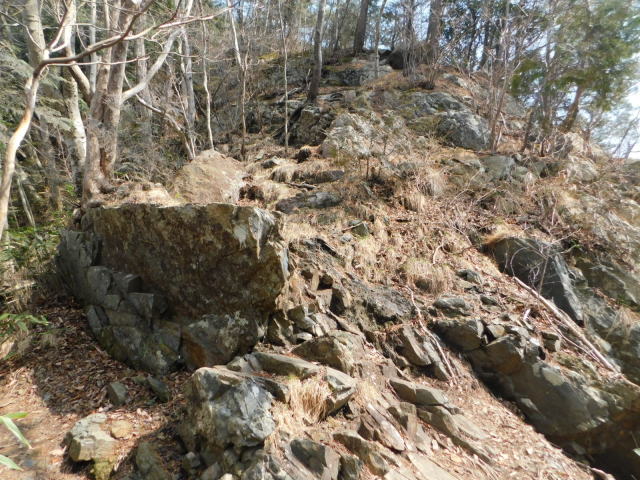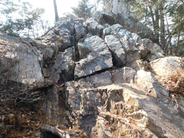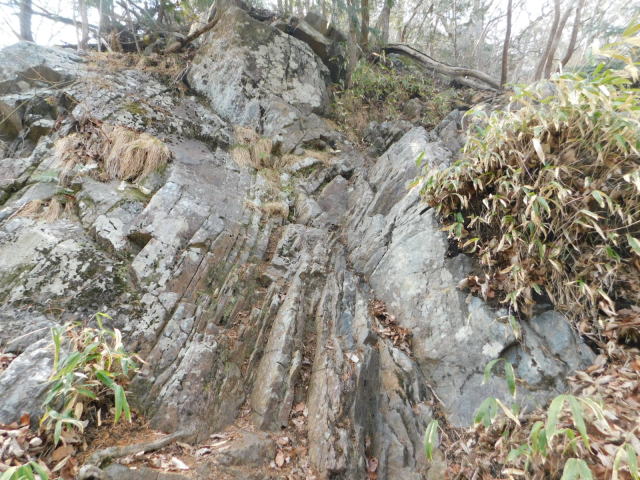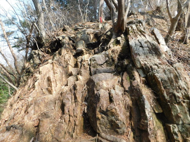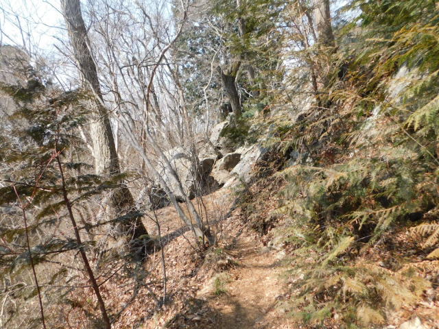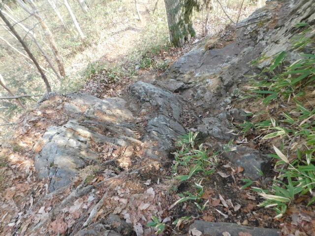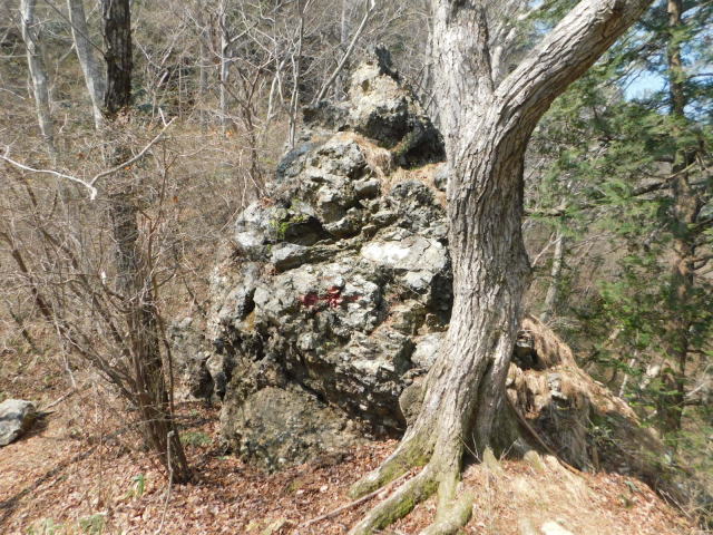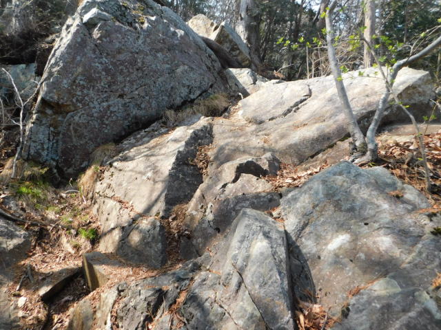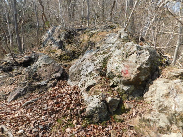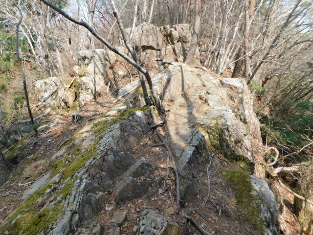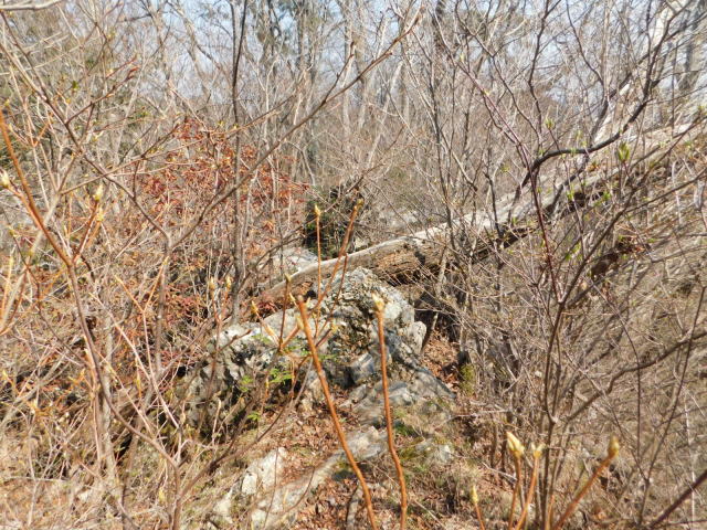 東稜の岩、登山道は左を行くが右にカタクリ群生地がある。