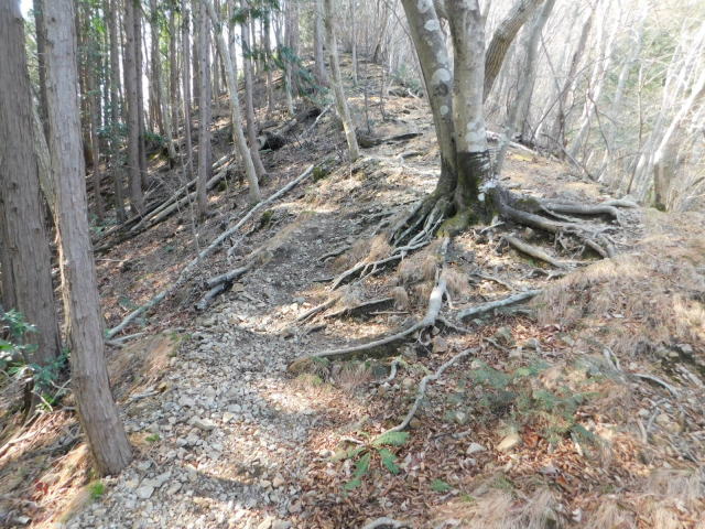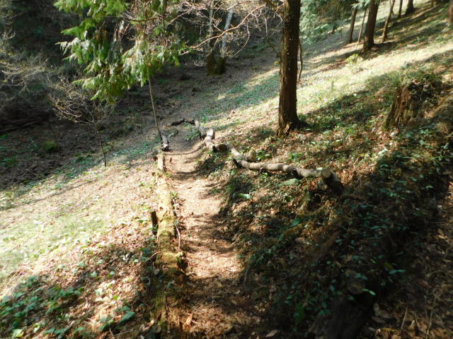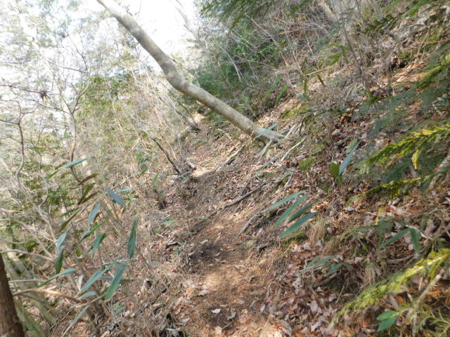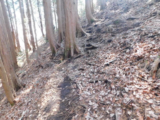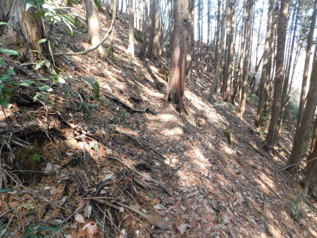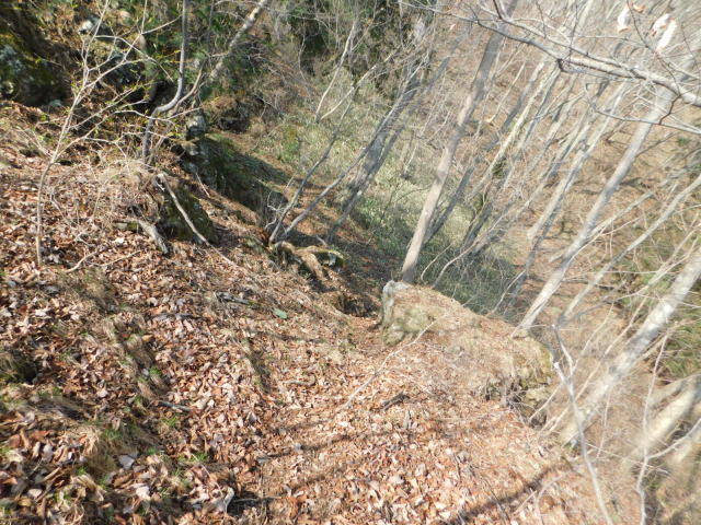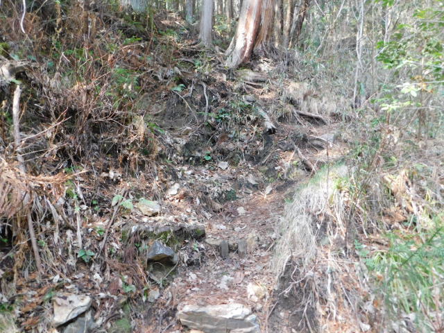 急斜面の狭い道を行く。