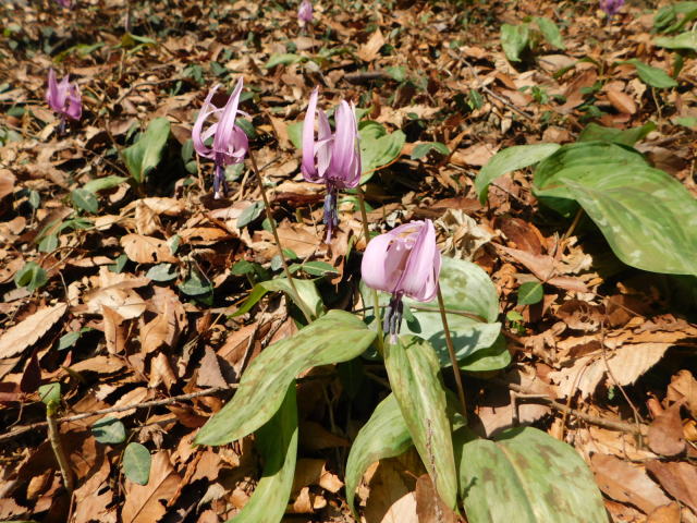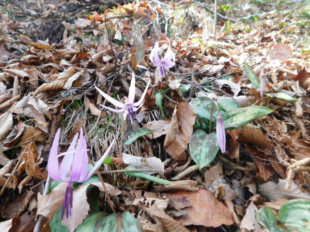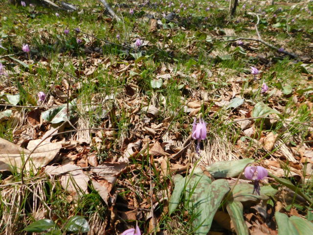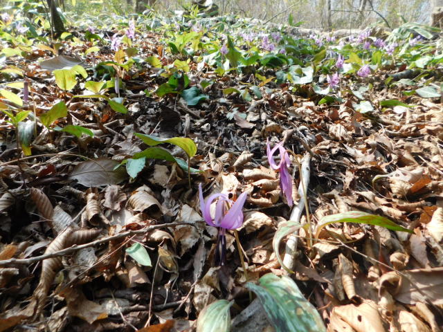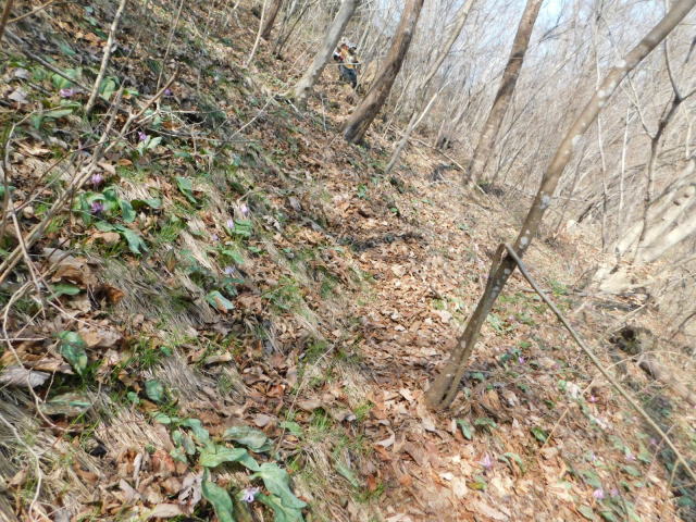 笹の斜面を抜けるとカタクリ咲く斜面に出る。