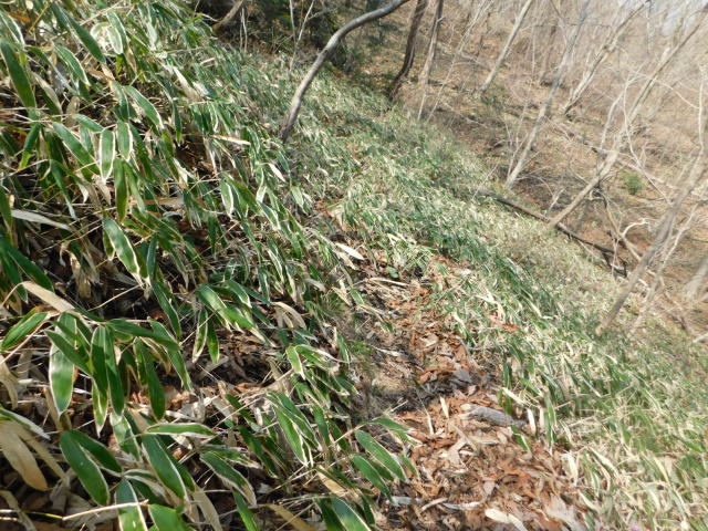 笹に覆われた斜面を行く。