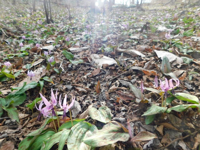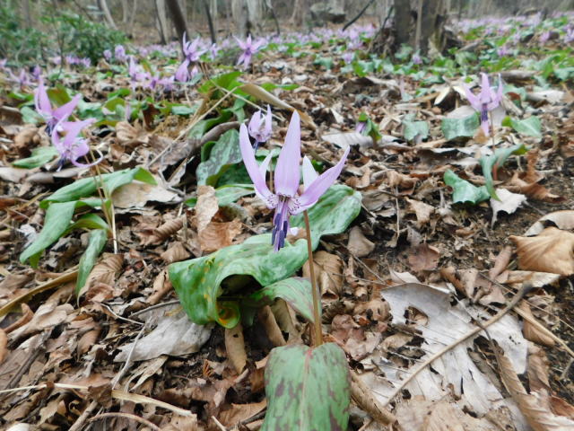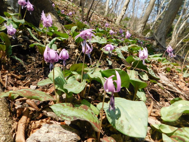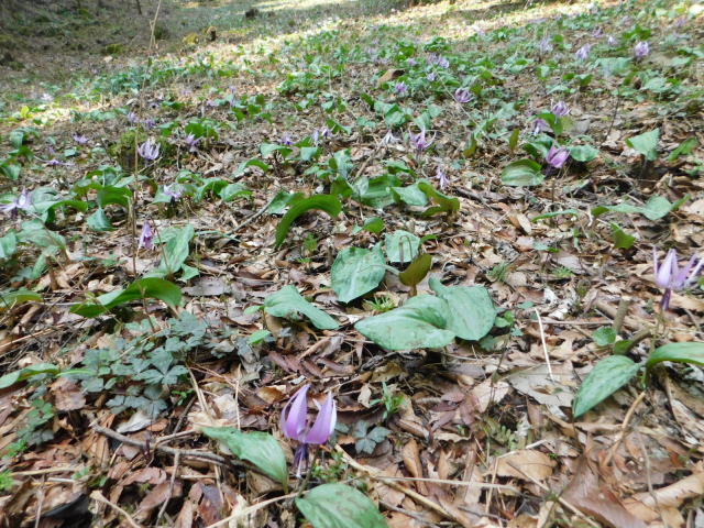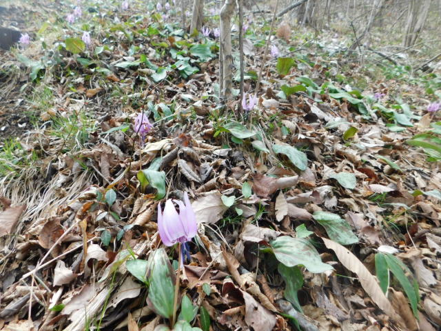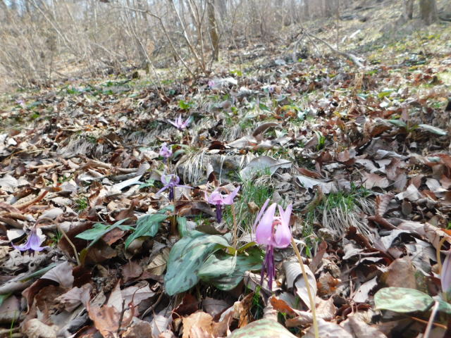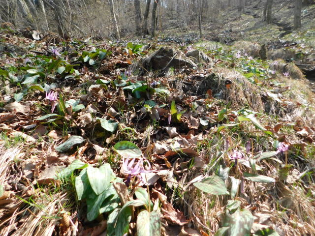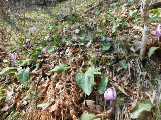カタクリ咲く斜面。