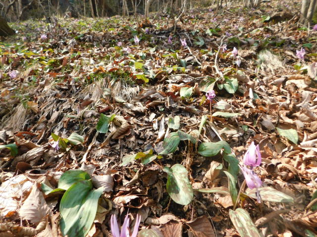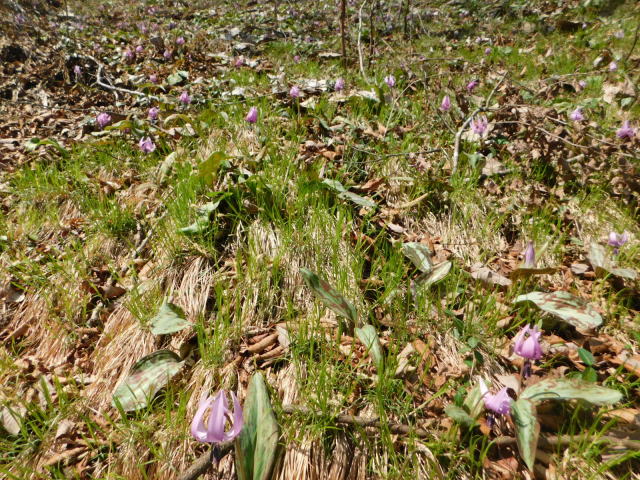 カタクリ咲くお花畑の斜面。