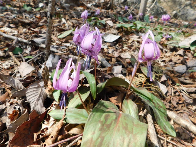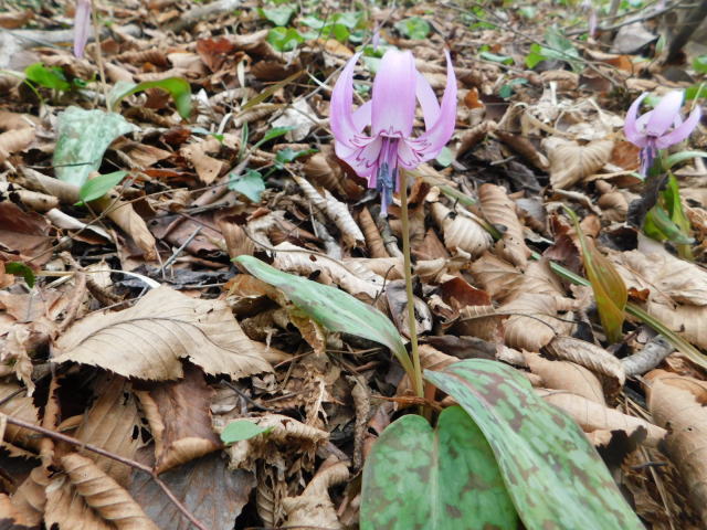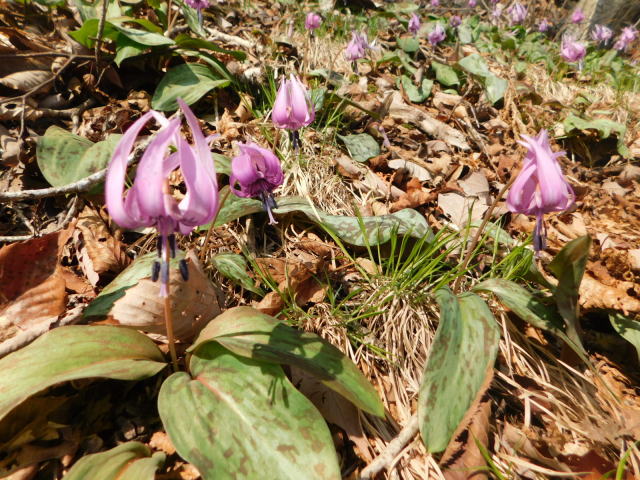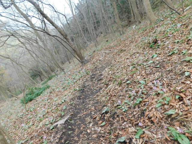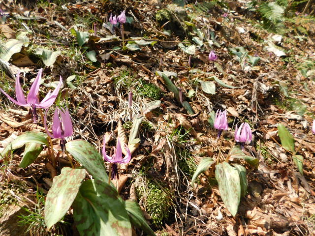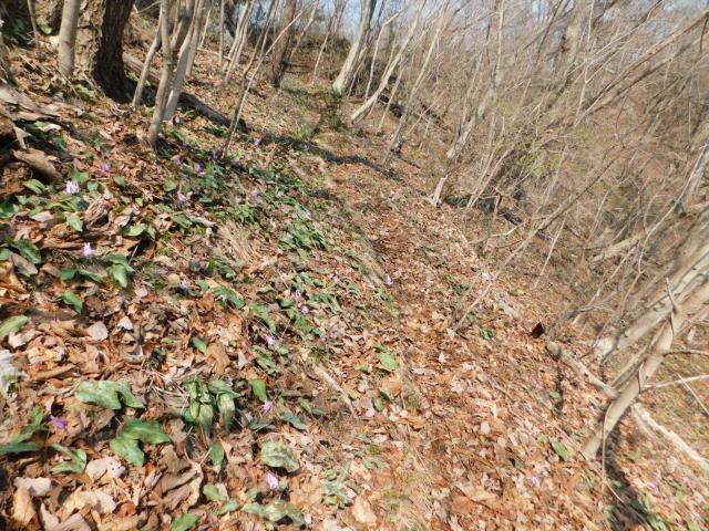 カタクリ咲く斜面を登って行く。