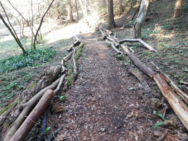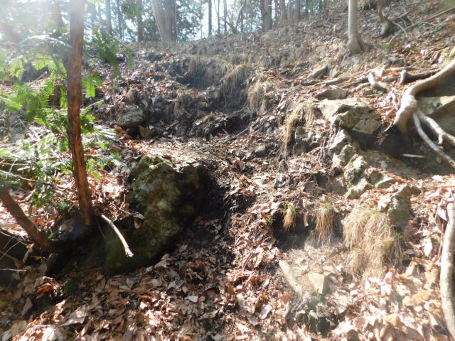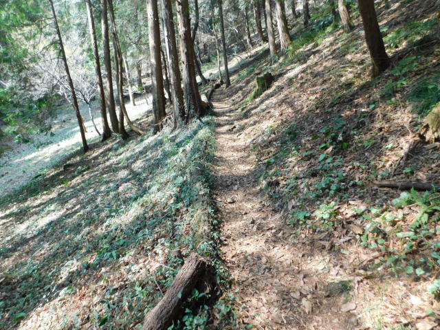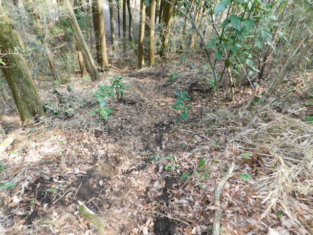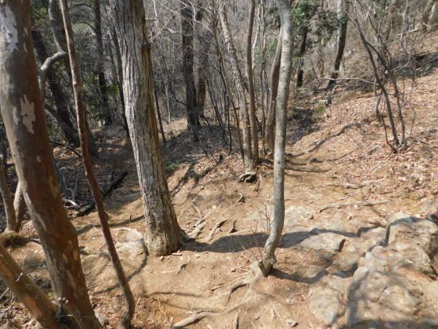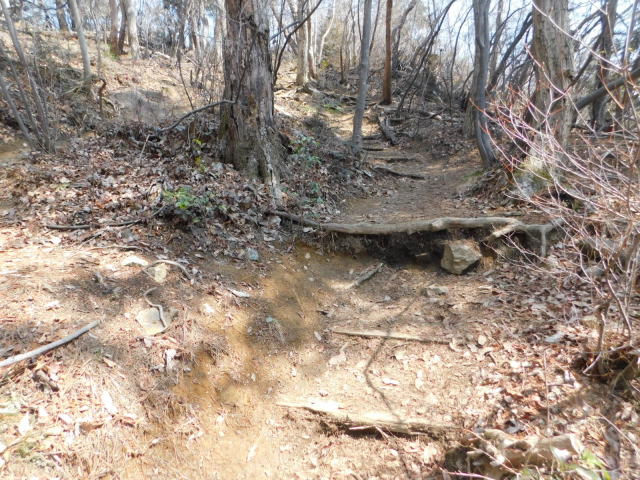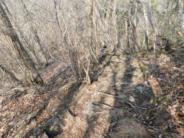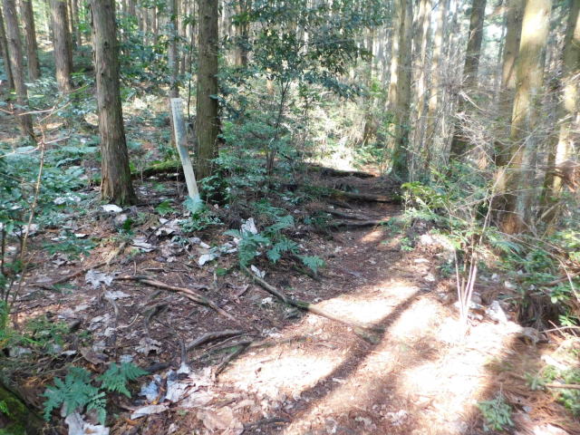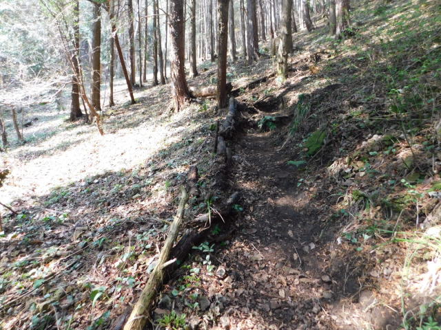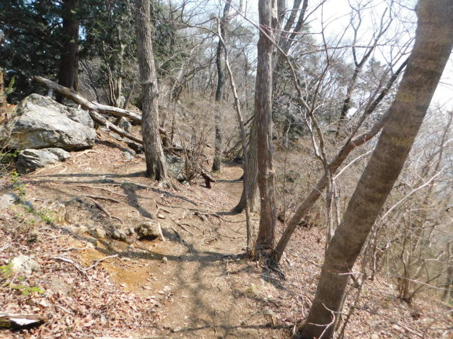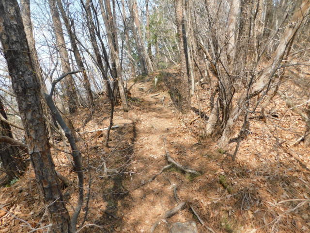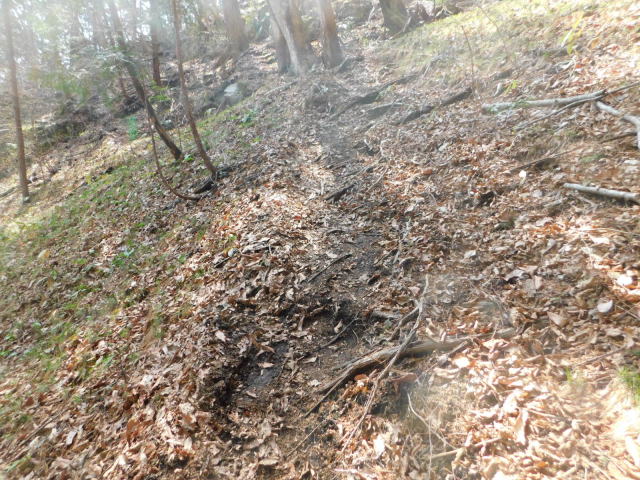 斜面をトラバースして行くと岩の所に着て、その先で北コースが右折するところに出る。北コースが右折するところを真っすぐ登って行くとカタクリ群生地になる。カタクリ群生地を