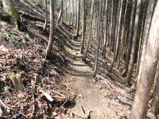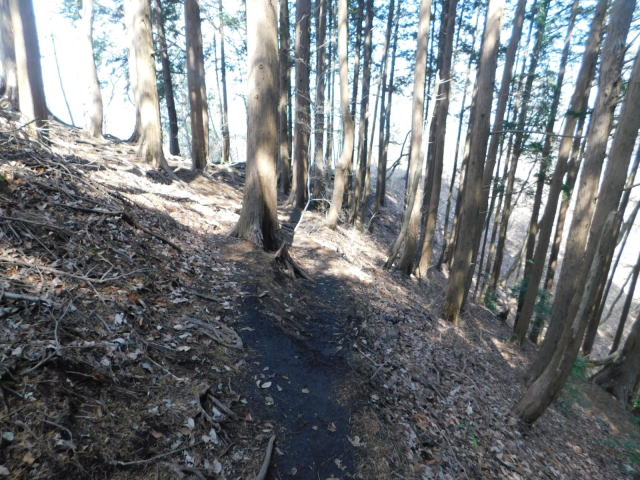 急斜面の尾根を登って行く。