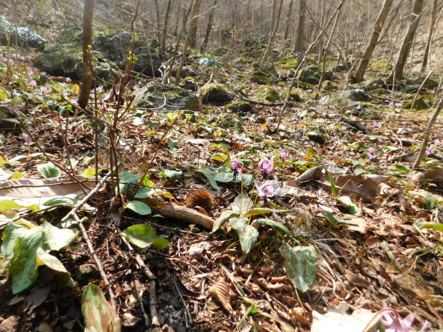 斜面下のカタクリ。
