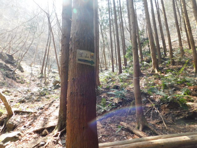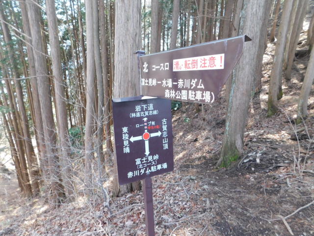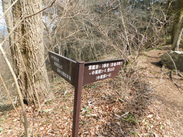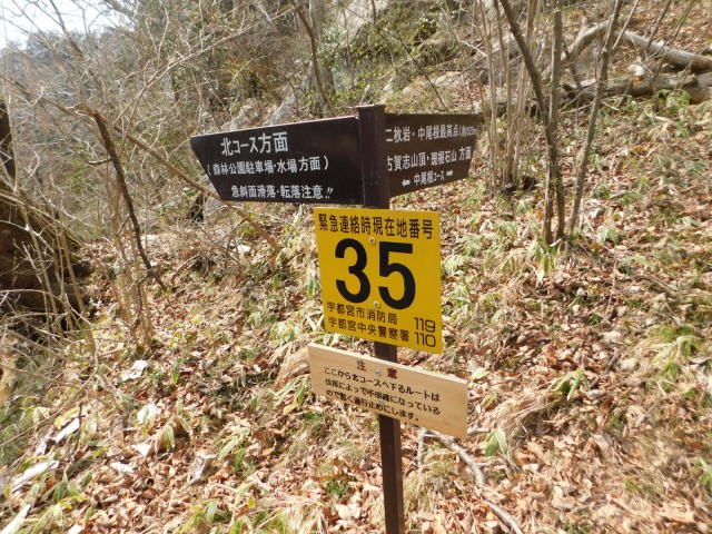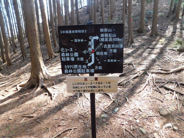 中尾根の道標、カタクリ群生地方面へ行く。