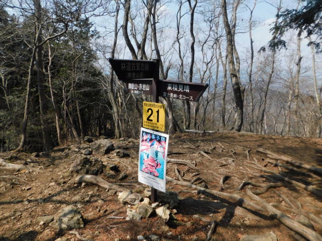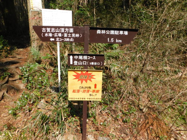 古賀志山頂と東稜見晴の分岐の道標、古賀志山頂へ行く。