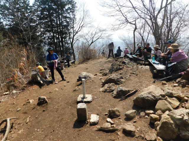 登って行く。古賀志山を降りて東稜見晴へ行く。東稜見晴の展望は霞んでいた。東稜見晴のベンチでカップ麺の昼食とする。この後、中尾根北のカタクリ群生地へ行くが、中尾根最高点