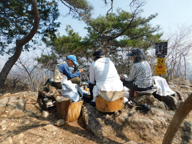古賀志山頂のベンチは大勢の人。