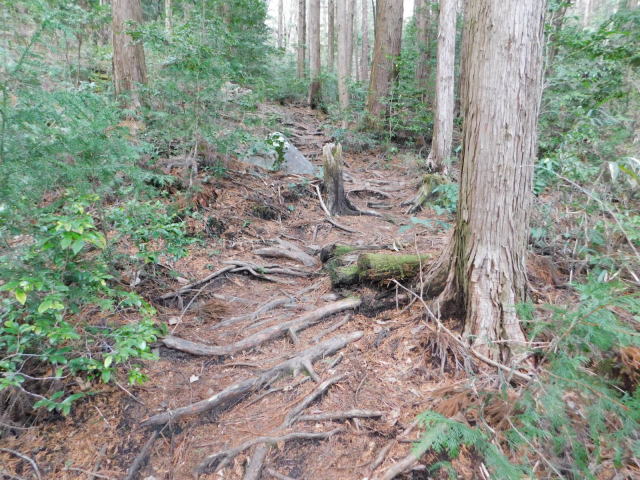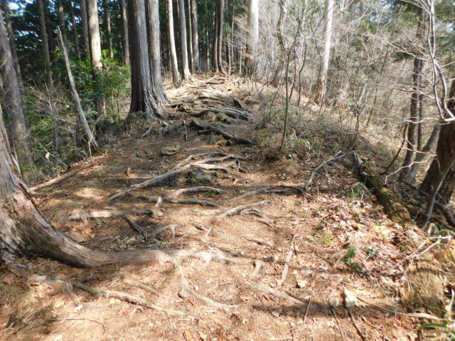 木の根の道を行く。