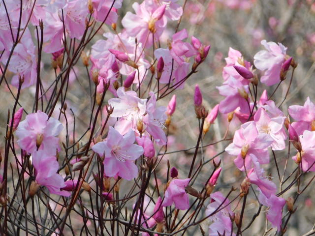 蕾の多いアカヤシオ。