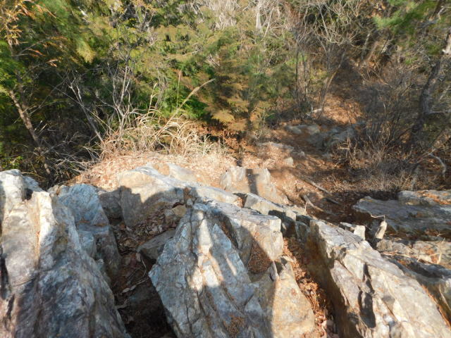 岩場を降りて行く。 降りて来た岩場。