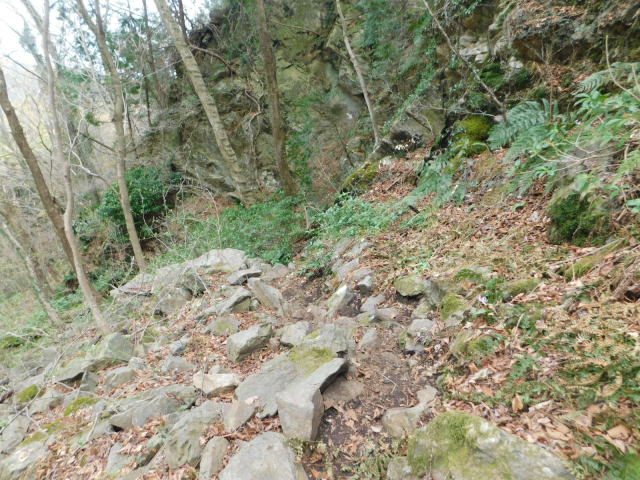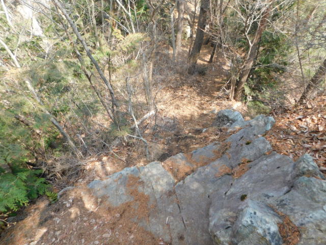 岩の多い道を降りて行く。